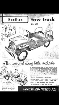 A tow truck (also called a wrecker, a breakdown truck, recovery vehicle or a breakdown lorry) is a truck used to move disabled, improperly parked, impounded, or otherwise indisposed motor vehicles. Pedal car parts, hamilton tow truck rails. Our firetruck pedal car inspires hours of play.
